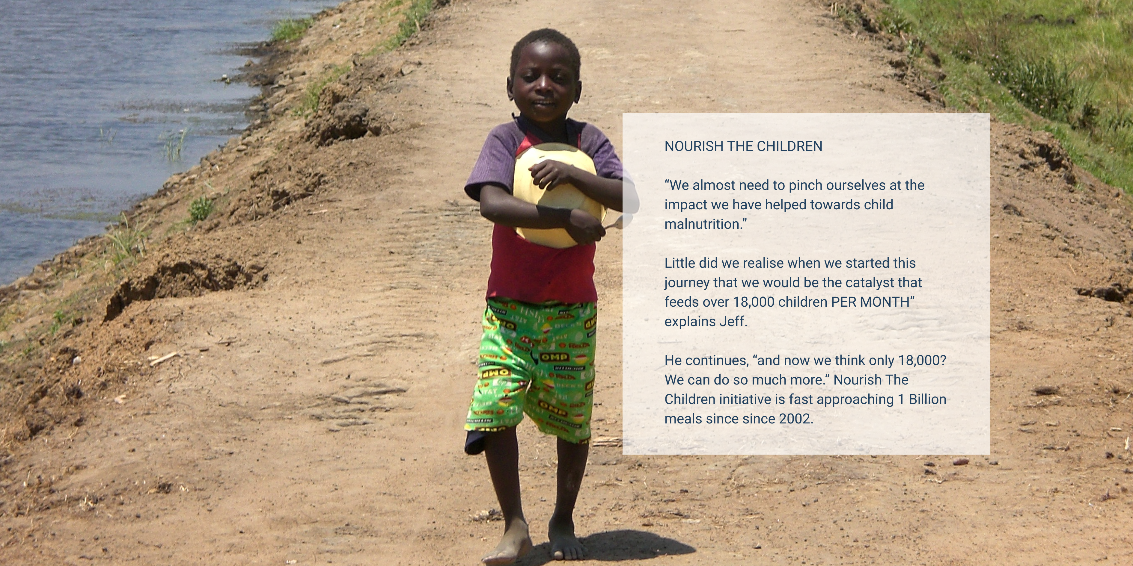 Inspired by this story, making a difference is at the heart of Jeff’s business. Together with their incredible team of leaders, they have fed millions of meals to malnourished children around the world through the Nourish The Children program.